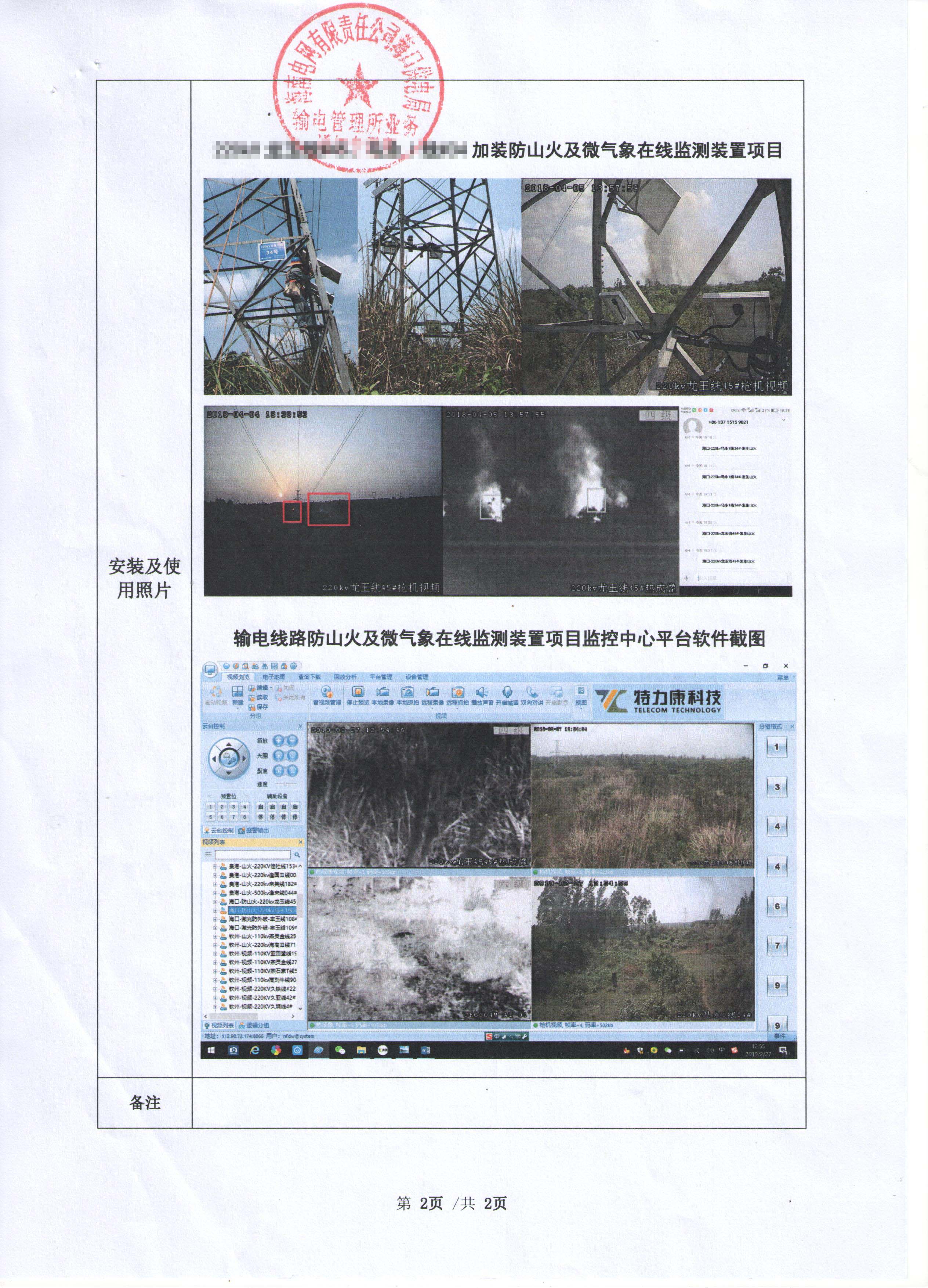 設備于2018年1月26日安裝并投入使用,使用至今,該設備及系統(tǒng)運行穩(wěn)定,在使用過程中,設備能對輸電線路走廊山火及微氣象進行監(jiān)測,及時向維護人員發(fā)送報警信息,并聯(lián)動錄像裝置,可以很好的監(jiān)測輸電線路山火及微氣象。