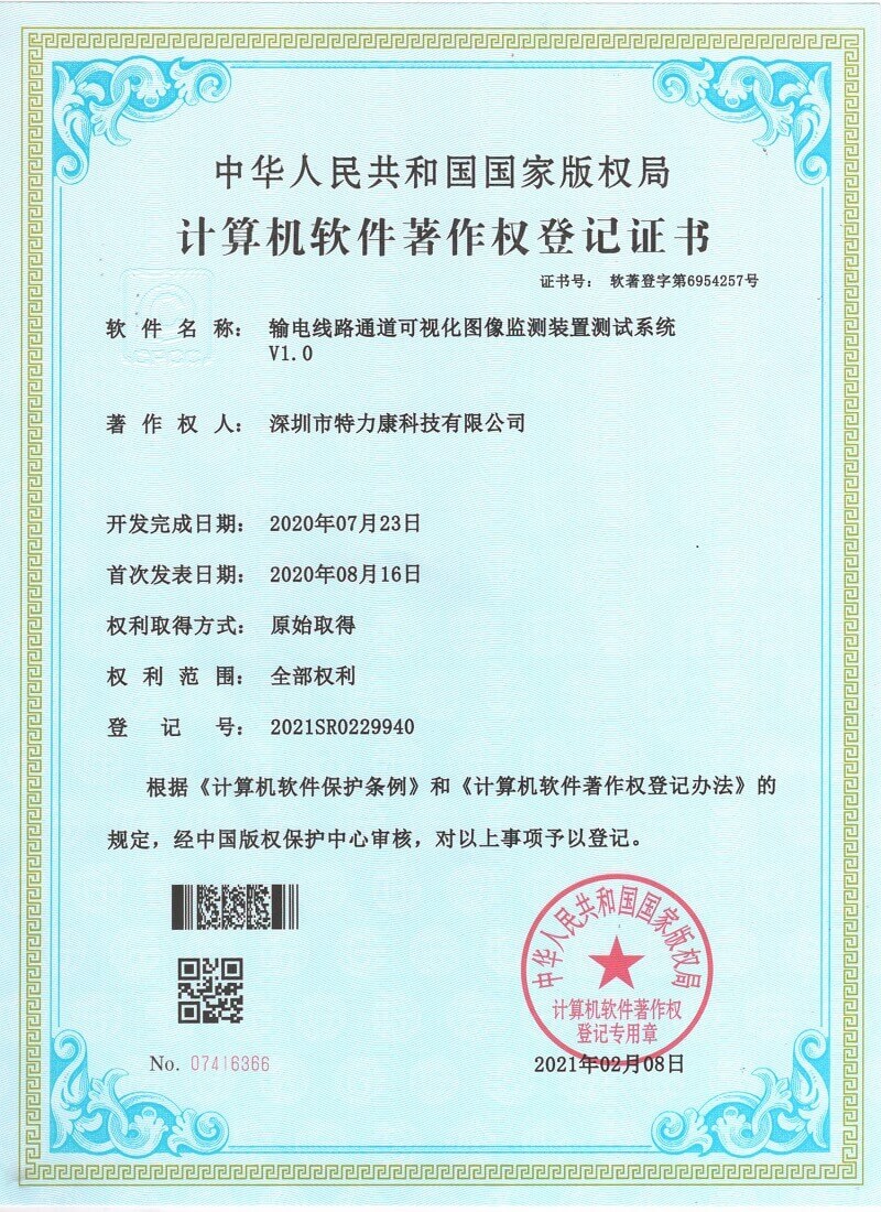 - 輸電線路通道可視化圖像監測裝置測試系統認證
