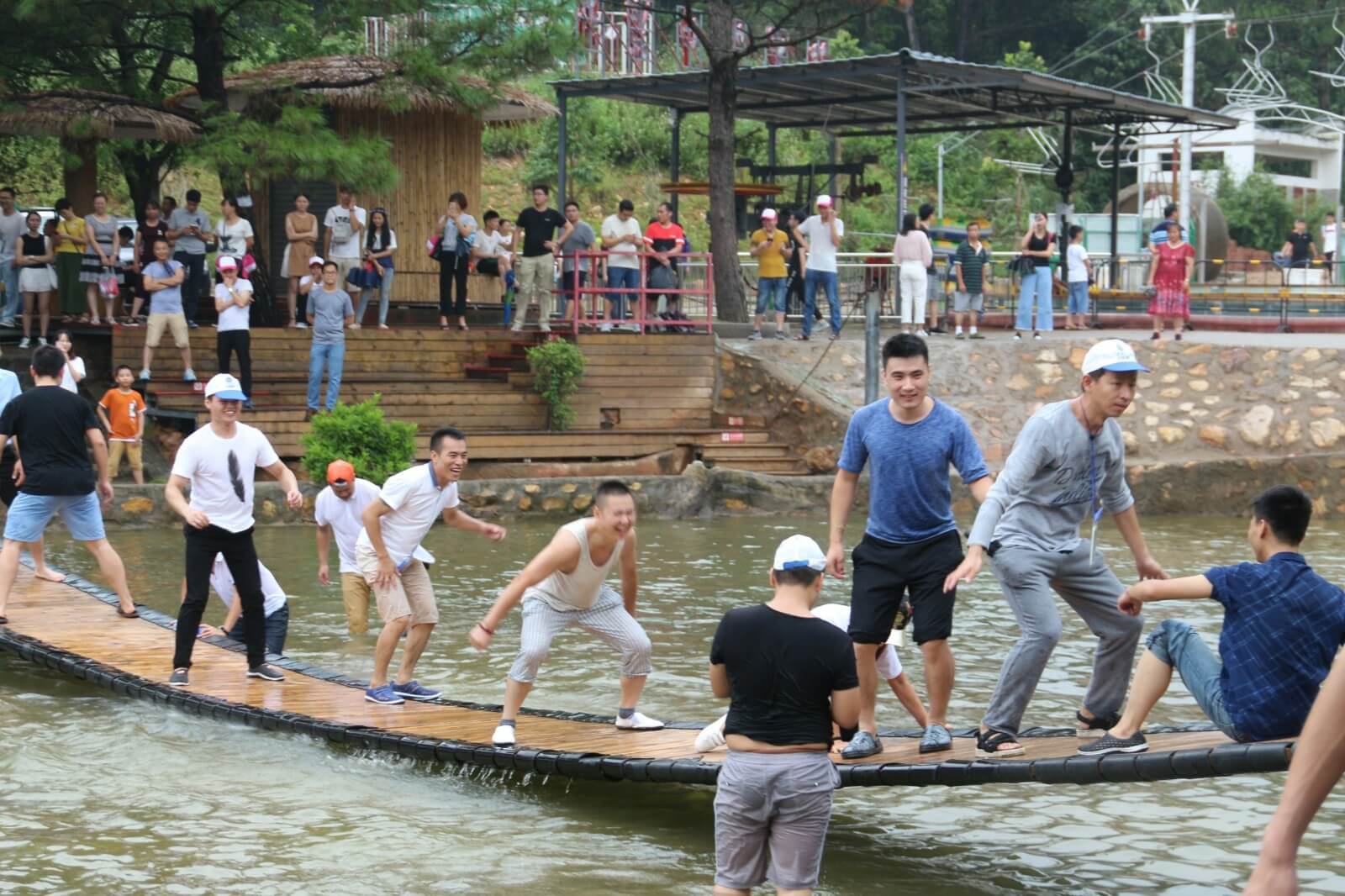 我們懷揣著忐忑與激動的心情加入了漂流的隊伍中,湍急的流水時而將我們淹沒,時而將我們拋起,帶著我們在狹窄的河道橫沖直撞,讓我們親身體驗了漂流的刺激。當然,河道也有緩沖流域,在這我們可以用水槍及水瓢打水戰,除隊友以外人員均可作為水戰對手,你一槍,我一瓢,玩得不亦樂乎。