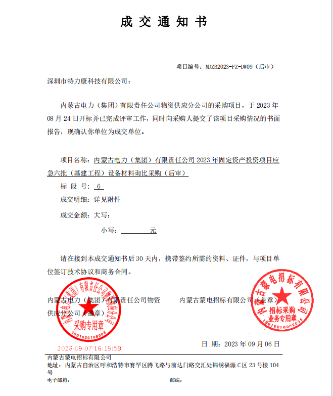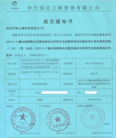 特力康中標(biāo)國(guó)網(wǎng)黑龍江送變電工程公司的2024年度第18次物資類(lèi)競(jìng)爭(zhēng)性談判采購(gòu)項(xiàng)目——慶陽(yáng)驅(qū)鳥(niǎo)器物資框 特力康中標(biāo)國(guó)網(wǎng)甘肅省電力公司省管產(chǎn)業(yè)單位2024年第五次物資競(jìng)爭(zhēng)性談判授權(quán)采購(gòu)項(xiàng)目 中標(biāo)喜訊:深圳市特力康科技有限公司成功入圍許繼集團(tuán)綜合能源公司輸電線路視頻在線監(jiān)測(cè)裝置模塊集采項(xiàng)目 中標(biāo)喜訊:特力康成功中標(biāo)國(guó)網(wǎng)重慶市電力公司渝中一片區(qū)項(xiàng)目 特力康成功中標(biāo)國(guó)網(wǎng)天津市電力公司2024年第二次?物?資招標(biāo)項(xiàng)目 特力康中標(biāo)國(guó)網(wǎng)安徽省電力有限公司蕪湖供電公司2024年3月非物質(zhì)采購(gòu)項(xiàng)目 未冰先防 精準(zhǔn)預(yù)判——特力康模擬覆冰裝置守護(hù)遼寧電網(wǎng)寒冬生命線 特力康架空輸電線路故障監(jiān)拍裝置,筑牢湖南電網(wǎng)安全防線 特力康輸電線路微波覆冰在線監(jiān)測(cè)裝置,守護(hù)湖北電網(wǎng)寒冬安全 特力康架空輸電線路導(dǎo)線弧垂監(jiān)測(cè)裝置,守護(hù)湖北輸電線路弧垂安全 特力康輸電線路防外力破壞系統(tǒng),為江西境內(nèi)綿延的輸電線路筑起“主動(dòng)防護(hù)屏障”。 特力康北斗桿塔傾斜在線監(jiān)測(cè)裝置,守護(hù)山西電網(wǎng)桿塔穩(wěn)定 特力康高壓輸電線路導(dǎo)線覆冰在線監(jiān)測(cè)裝置,為河南電網(wǎng)覆冰護(hù)航 鄂電穩(wěn)線“哨兵”:特力康舞動(dòng)監(jiān)測(cè)裝置守護(hù)超高壓線路舞動(dòng)安全 重慶變電站“防鳥(niǎo)衛(wèi)士”:特力康一體化驅(qū)鳥(niǎo)器守護(hù)山城電網(wǎng) 特力康輸電線路智能AI多目監(jiān)控裝置+傾斜監(jiān)測(cè)守護(hù)山西輸電生命線 鄂網(wǎng)“全景眼”:特力康一體化視頻監(jiān)控系統(tǒng)守護(hù)輸電線路 山東電網(wǎng) “穩(wěn)塔哨兵”:特力康智能桿塔傾斜監(jiān)測(cè)預(yù)警裝置筑牢電力桿塔安全防線 寧夏配電線路安裝了我司防外破電子化智能警示牌